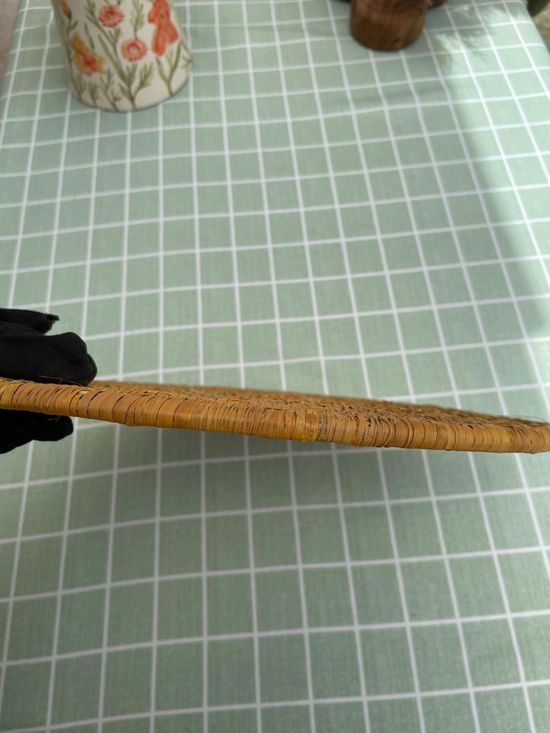 These boho mustard placemats is made from date palm fiber gathered from the various palm plantations that surround the artisans' village.