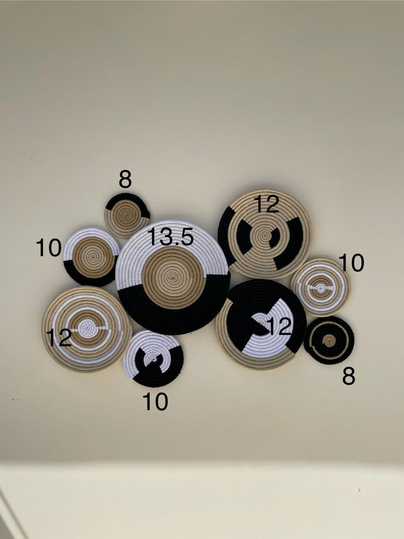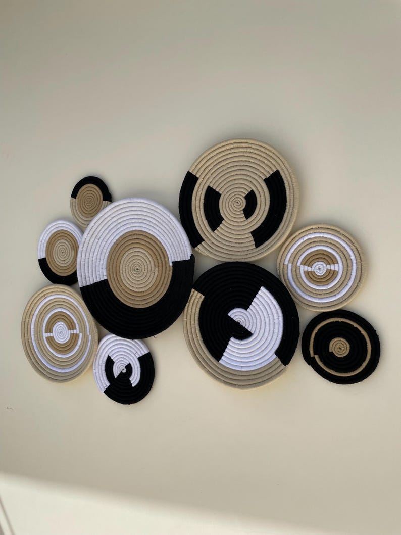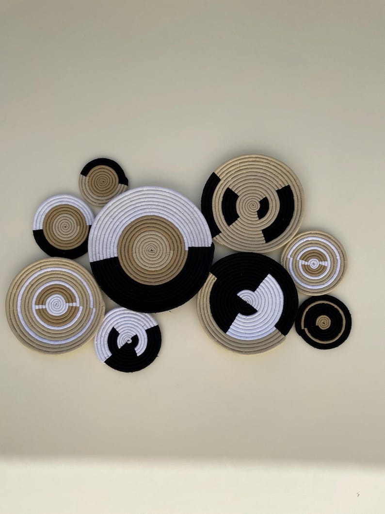 boho wall basket set, african wall baskets, black & beige wall art, hand woven wall baskets, wall hanging baskets, basket wall decor