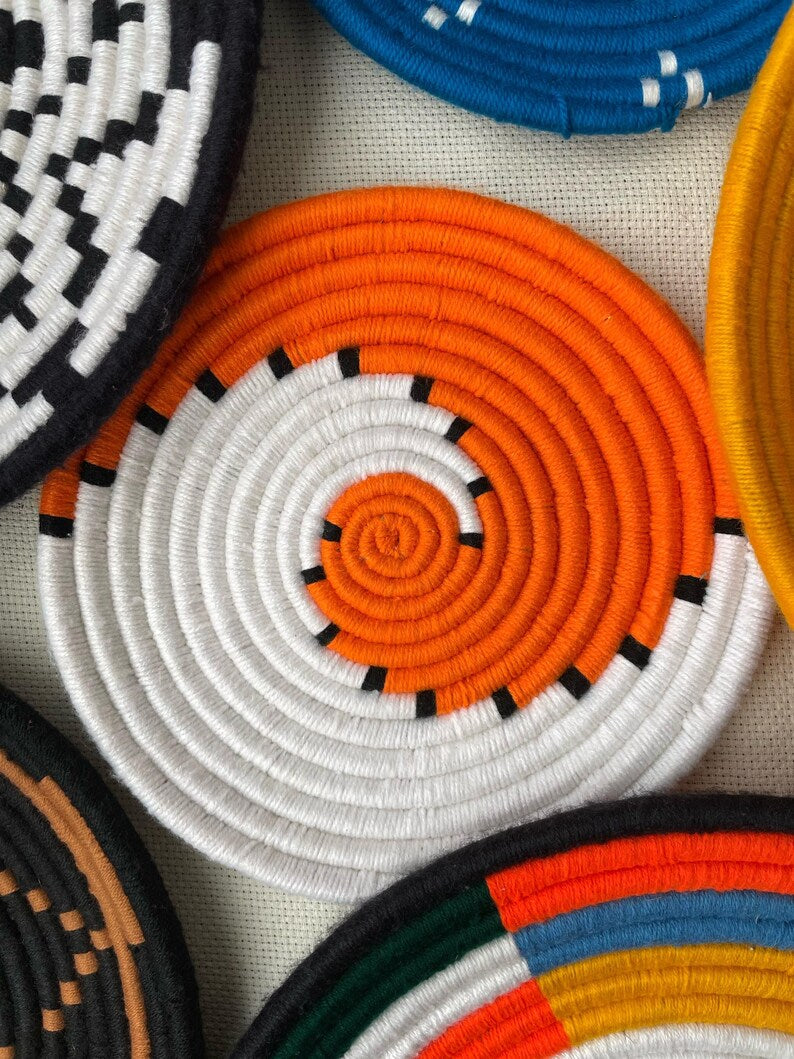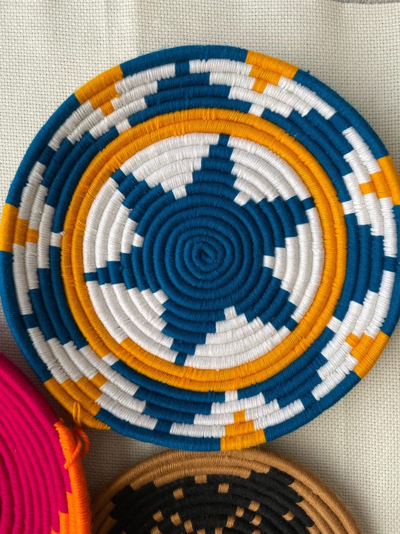 Colorful Boho Wall Basket Decor Set of 5, Bohemian Wall Hanging, Woven Wall Baskets, African Wall Baskets, Living Room & Bedroom Wall Art