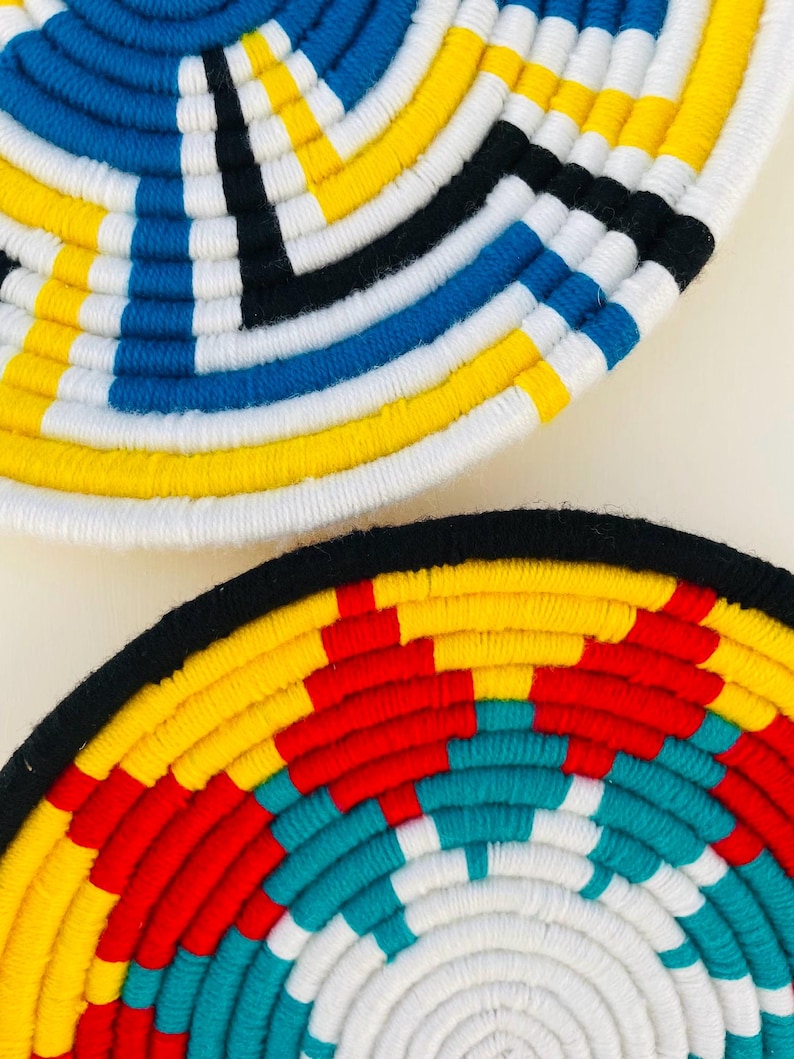 Vibrant wall Hanging Baskets set of 9, African wall baskets, handwoven wall baskets, wall basket set, boho wall baskets, assorted baskets